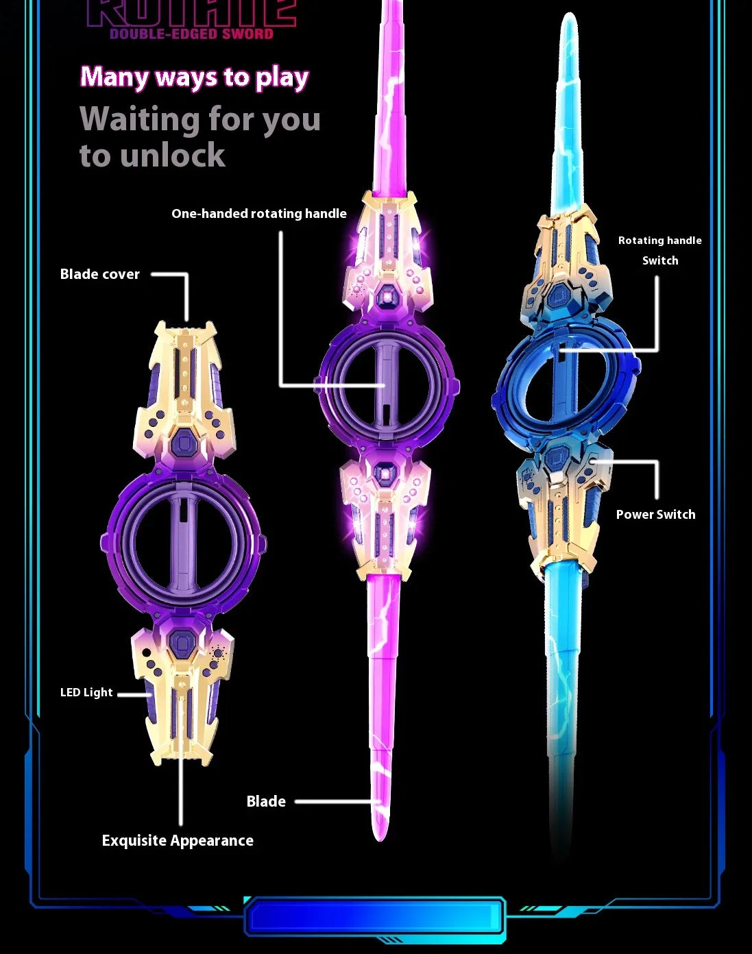 Unleash the power of light and thunder with the ultimate fusion of futuristic design and electrifying energy. Engineered with precision and wrapped in a stunning gold-violet finish, this double-ended plasma blade channels pure power at your fingertips.